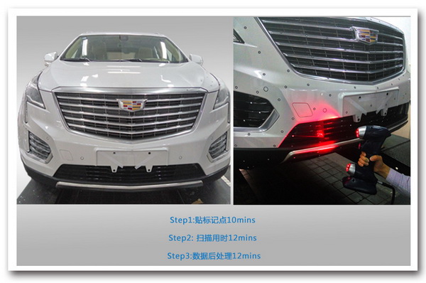 流程: 以下圖掃描整車為例,首先,為整車布點(diǎn),并用全局?jǐn)z影測(cè)量系統(tǒng)獲取標(biāo)記點(diǎn)的空間三維數(shù)據(jù)。